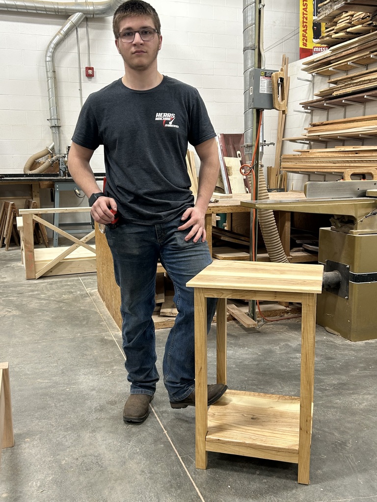 Witt made a quality bookcase for his grandmother out of oak. He is also pictured with a neat walnut and ash cutting board. He worked hard to get these done before Christmas. Good job, Witt!